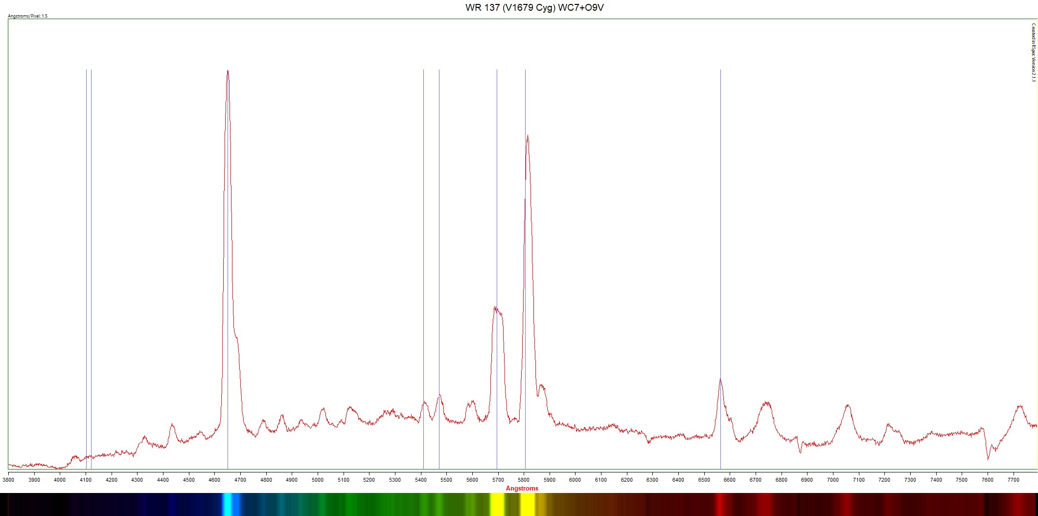From Wikipedia: WR 137 (HD 192641, V1042 Cyg) is a fascinating Wolf-Rayet binary star system in the constellation Cygnus, known as a prolific cosmic dust factory that periodically brightens as it creates dust in its powerful stellar winds, especially around its 13-year orbital close approach (periastron) with its massive O-type companion star. This WC7+O9V system features intense winds from the central Wolf-Rayet (WC7) star colliding with material from its companion, forming dust clouds that absorb and re-emit light in the infrared. Key Characteristics: Type: A Wolf-Rayet binary (WC7+O9V). Location: In the constellation Cygnus, about 6,000 light-years away. Dust Production: Creates significant dust, causing infrared brightening every 13 years as the stars get close. Orbit: A long 13.1-year period, with a nearly edge-on orbit, allowing us to see the dust formation in its orbital plane. Components: A hot, massive Wolf-Rayet star (WC7) and a fast-rotating O-type star.