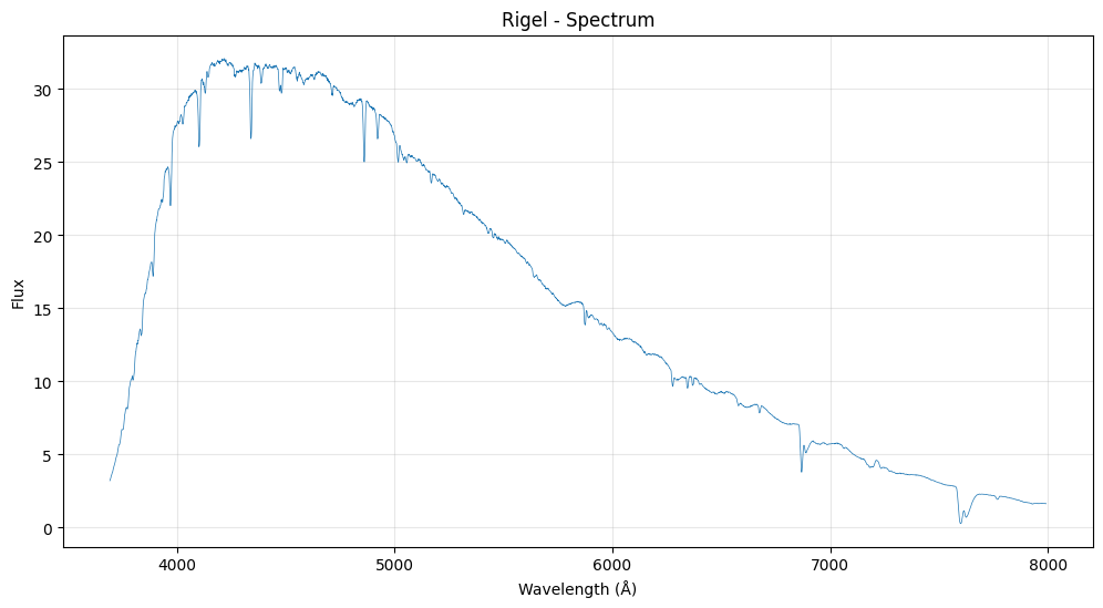 Beta Ori. A star of spectral type B8Ia, Rigel is calculated to be anywhere from 61,500 to 363,000 times as luminous as the Sun, and 18 to 24 times as massive, depending on the method and assumptions used. Its radius is more than seventy times that of the Sun, and its surface temperature is 12,100 K. Due to its stellar wind, Rigel's mass-loss is estimated to be ten million times that of the Sun. With an estimated age of seven to nine million years, Rigel has exhausted its core hydrogen fuel, expanded, and cooled to become a supergiant. It is expected to end its life as a type II supernova, leaving a neutron star or a black hole as a final remnant, depending on the initial mass of the star