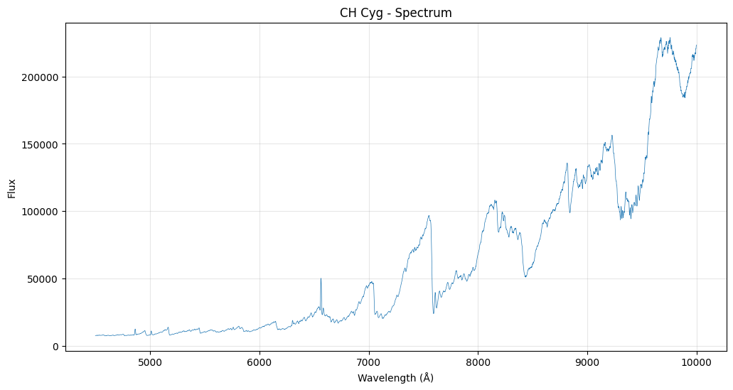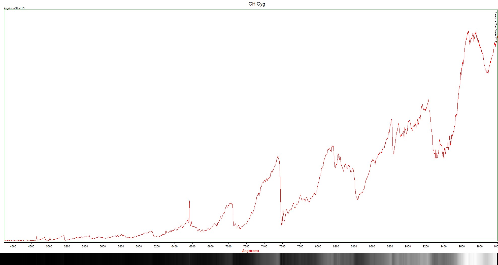 The earliest observations of CH Cygni were made in 1890 by Pickering and Wendel using wedge photometer, and was classified as a M6III variable star in 1924.[8] In 1963 strong H I emissions were observed, indicating CH Cygni was likely in a symbiotic relationship with a white dwarf. Similar emissions were observed in 1965, 1967, 1977, 1992, and 1998.[9] The system was briefly thought to contain a third star[10] but this was later disproved.[6] (Wiki)