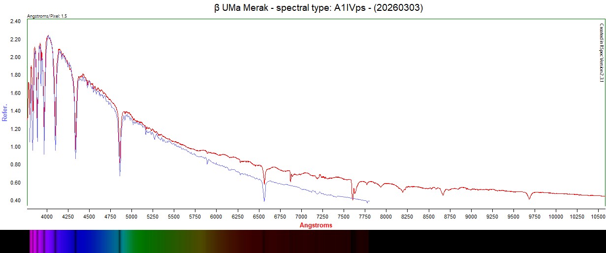 Beta UMa, β UMa). In 1943, β Ursae Majoris was listed as a spectral standard for the class of A1 V.[11] When improved instruments made it possible to identify subgiant luminosity classes for early A-class stars, β Ursae Majoris was assigned that class A0 IV.[12] This was later revised to A1 IV.[4] It is considered to be a mild Am star, a type of chemically peculiar star with unusually strong lines of certain metallic elements.[13]